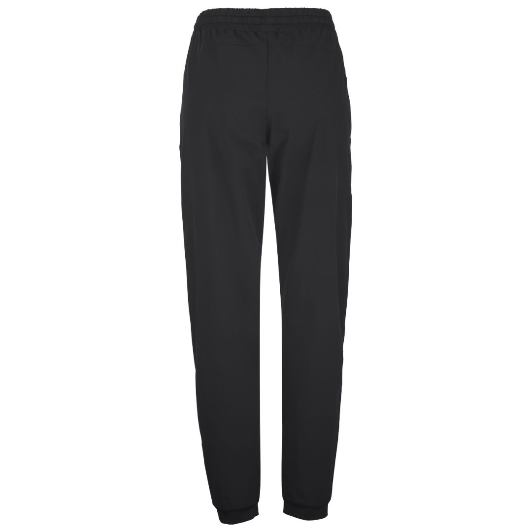 Spodnie mają lekko elastyczną tkaninę, która dopasowuje się do ciała i nie krępuje ruchów. Szeroki, elastyczny pas z regulacją na sznurek gwarantuje wygodne dopasowanie do sylwetki. Praktyczne dwie głębokie kieszenie boczne pozwalają przechowywać drobne akcesoria lub ogrzać dłonie w chłodniejsze dni. Nogawki wyposażone w zamki błyskawiczne umożliwiają częściowe rozpięcie dla większej wygody.