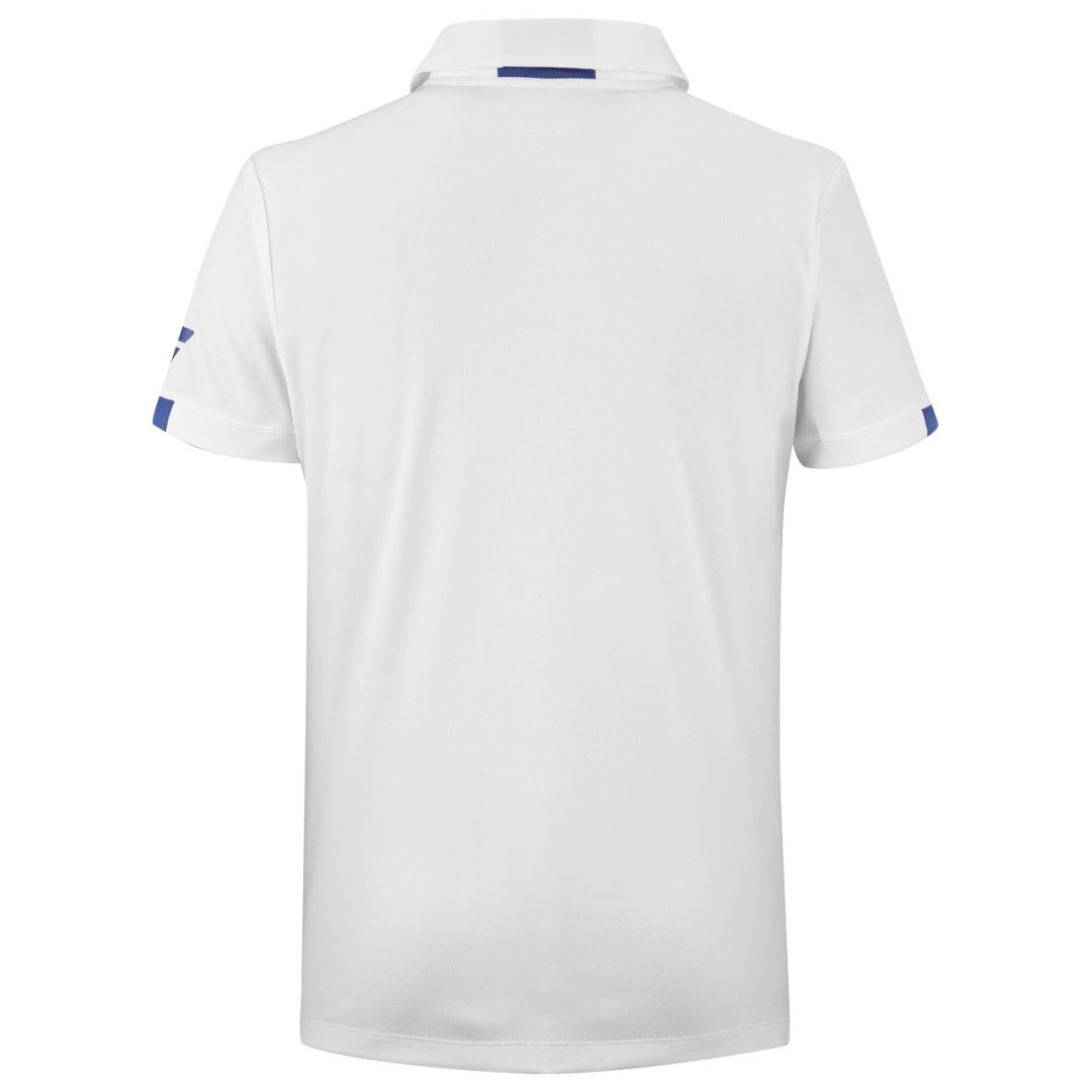 Biała koszulka polo Babolat Play Polo Boy, zaprojektowana z myślą o młodych tenisistach.