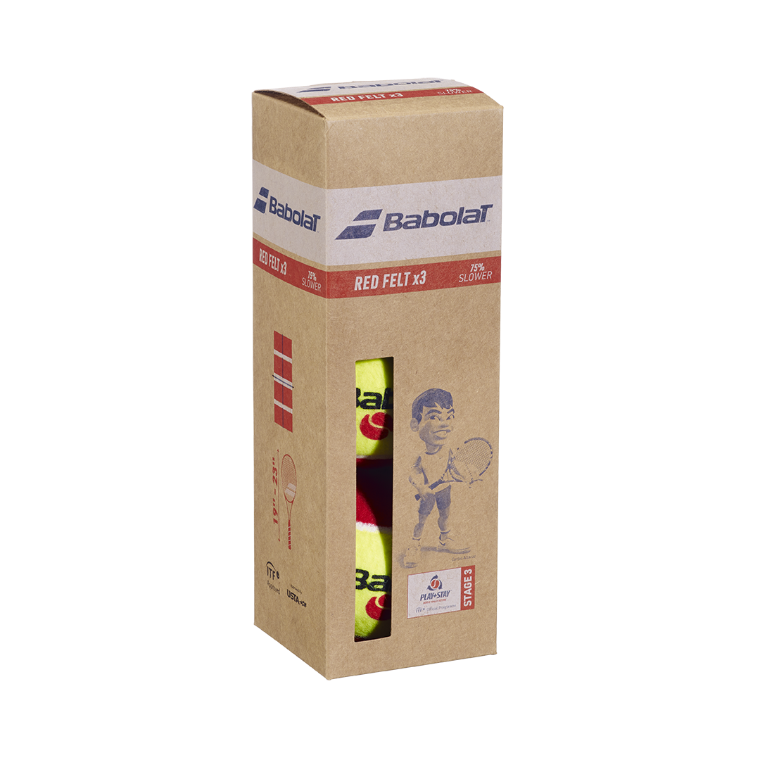 Babolat Red Felt Stage 3 to piłki tenisowe zaprojektowane specjalnie z myślą o najmłodszych graczach stawiających pierwsze kroki na korcie. Dzięki obniżonej kompresji (aż o 75% wolniejsze od standardowych piłek) oraz większemu rozmiarowi, młodzi adepci tenisa zyskują więcej czasu na reakcję i lepszą kontrolę nad uderzeniem. To idealne rozwiązanie do nauki podstaw techniki i rozwijania koordynacji ruchowej. Miękka konstrukcja i wyraźny kontrast kolorystyczny ułatwiają skupienie i komfortową grę, zarówno na zajęciach indywidualnych, jak i grupowych.